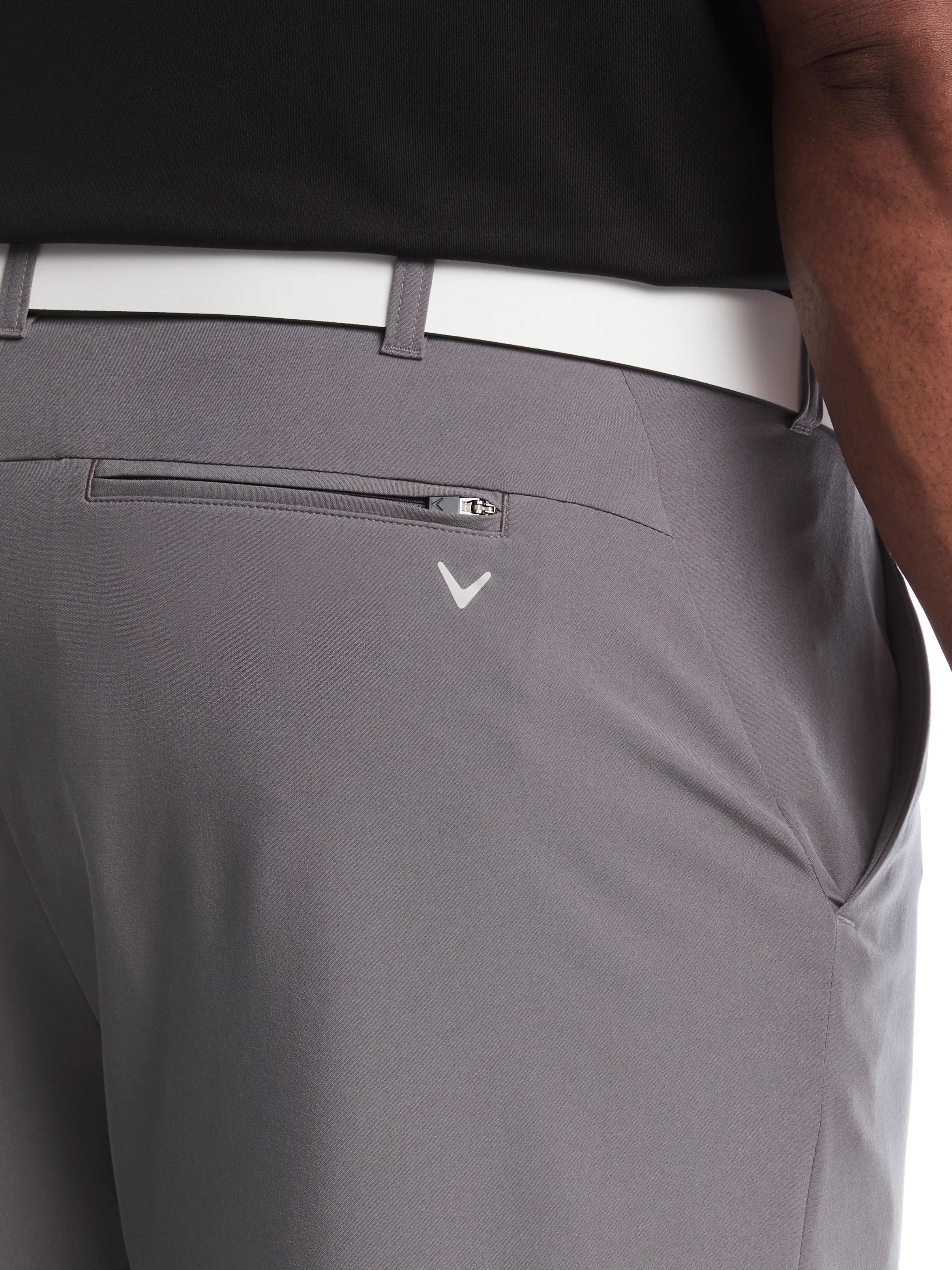 Made for life on the course or on the weekend, these Callaway golf shorts take you through the day in comfort and style. These men's golf shorts feature special technology for smooth, easy movement and also wick away moisture to keep you feeling dry and comfortable. Made for style as much as function, these golf shorts have a modern flat front design and solid color to pair effortlessly with a range of tops in your golf apparel collection